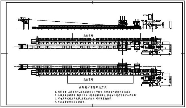 2.1 結(jié)構(gòu)緊湊,占地面積小,輔線運(yùn)轉(zhuǎn)方向不受限制,長度根據(jù)冷卻時(shí)間要求選定。