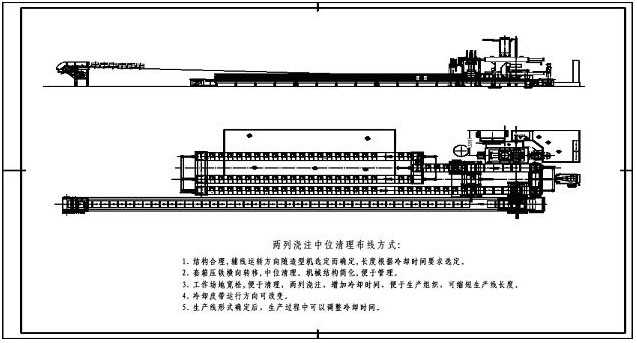 3. 雙列澆注單列冷卻中位位清理單列二次冷卻皮帶。