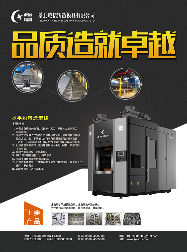 現(xiàn)在鑄造企業(yè)普遍存在造型工年齡老年化,年輕工人補充不上,工人費用偏高,招工難,員工管理難、產品質量低等實在問題,我公司特推出了能代替手工造型的全自動水平造型機,該設備具有自動化程度高、安全穩(wěn)定,效率高、節(jié)省人工、鑄造成本低等特點,實實在在的為鑄造企業(yè)解決了用人問題、成本高問題、產品質量低等問題,我公司為鑄造企業(yè)實現(xiàn)機械化生產而努力奮斗,您的要求就是我們的使命,其中入門級全自動造型機為小微企業(yè)升級換代提供了幫助,投入很低的費用可以解決很大的實際問題,相信我們就是相信自己。